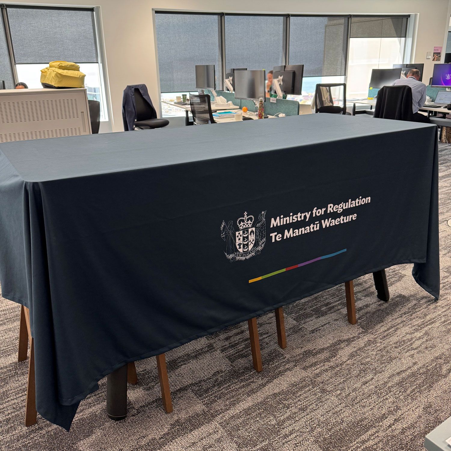 Brand your space with an NZ made custom printed full-colour loose throw table cloth. An easy & affordable solution for events, displays & exhibitions.